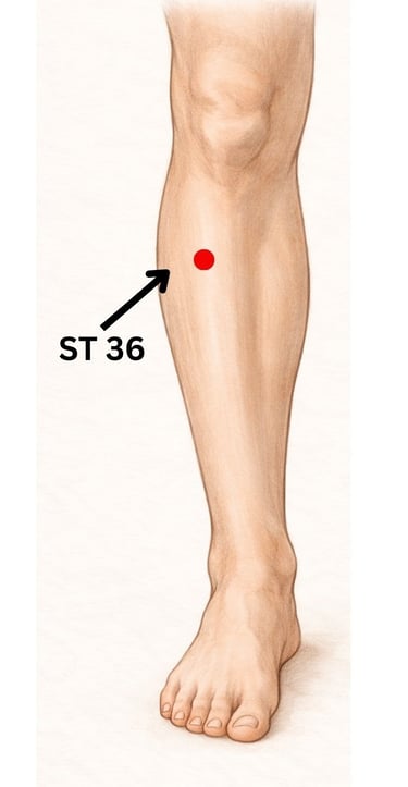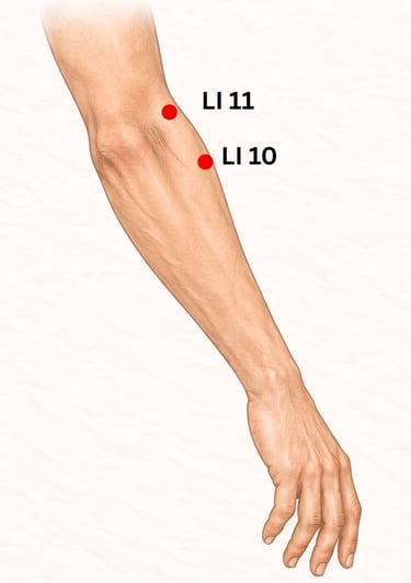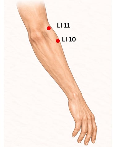 Acupressure on Large Intestine (LI) 10 and Stomach (ST) 36 - Pushing, activating, and warming acupressure points on the arms and legs can be used to boost and support the immune system. The Chinese names of both LI 10 and ST 36 contain the words “Three Miles”, with the idea that if you push on these points regularly, such as every three miles, you with have physical, mental, and immune strength to go many more miles to come. Research corroborates this by showing the anti-inflammatory effects of regular use of this point.